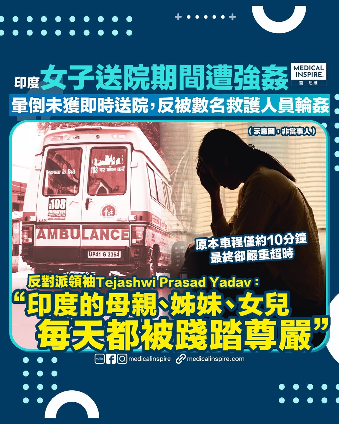 職業失德|印度女子暈倒送院,竟在救護車上遭數名男子輪姦!反對派領袖:印度女士的尊嚴每天都受踐踏