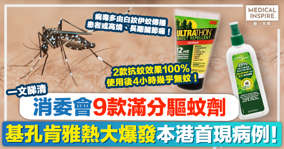 消委會驅蚊劑推薦|基孔肯雅熱殺到,可致高燒、頭痛、長期關節炎!一文睇清9款滿分驅蚊劑,築起防蚊防病屏障
