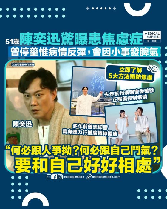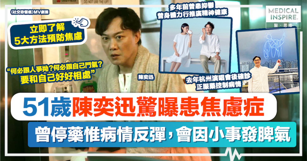 焦慮症|陳奕迅自揭確診焦慮症,曾嘗試停藥惟令病情反彈!焦慮並不可怕,可治療及預防