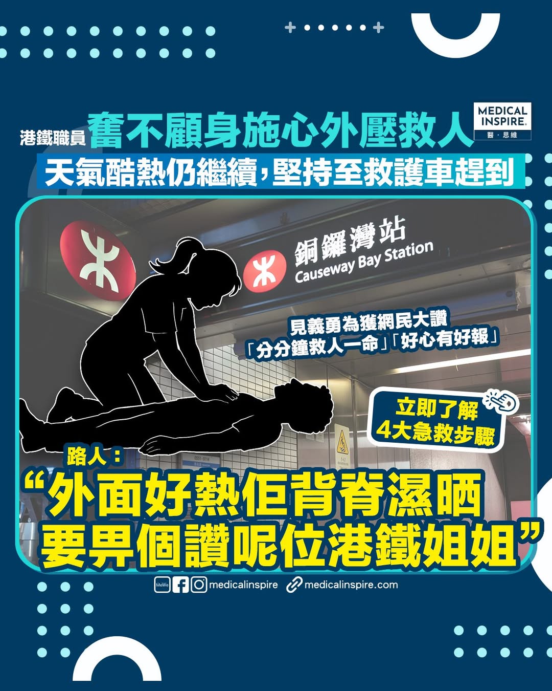 人間有愛|男子銅鑼灣站外突暈倒昏迷,港鐵職員酷暑下不停施心外壓。路人:佢做到救護車嚟