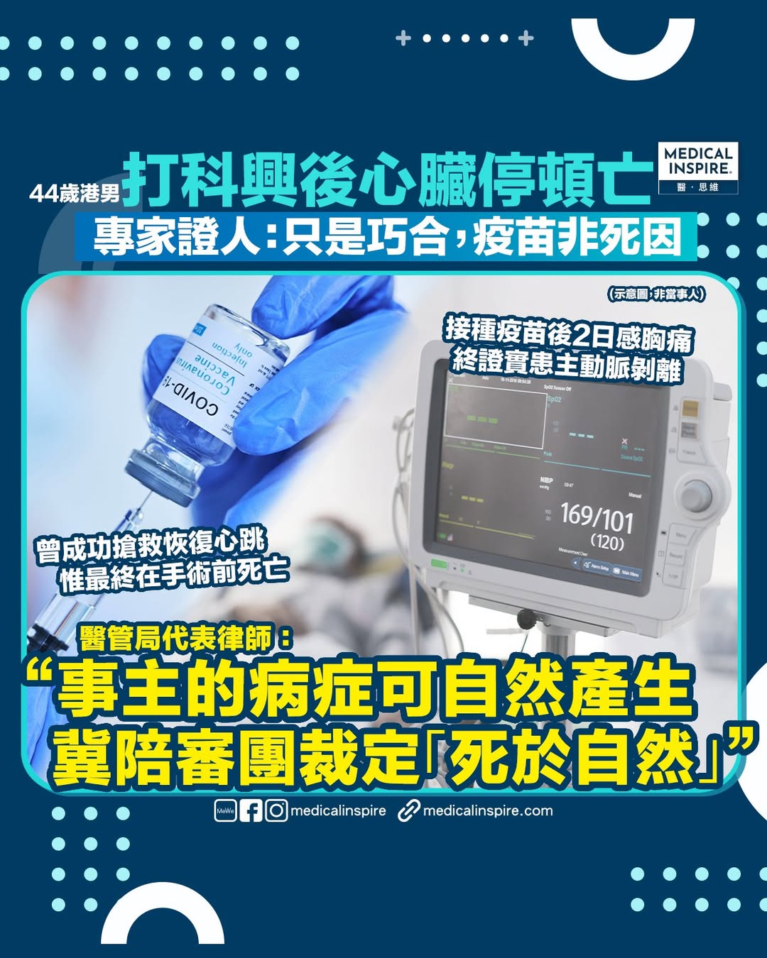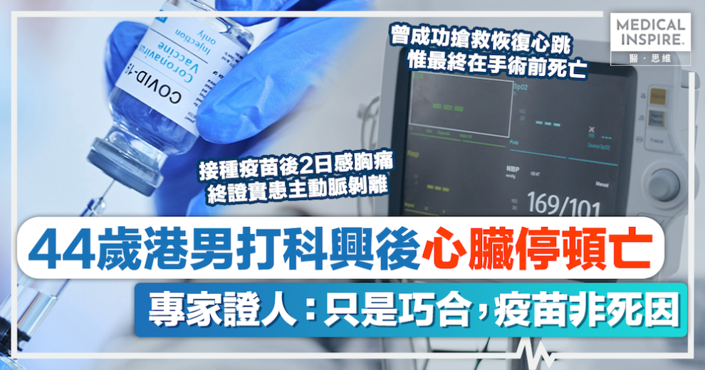 新冠肺炎|44歲男注射科興疫苗兩日後胸痛,入院留醫不治。心臟科專家證人:死因與疫苗無關,只是巧合