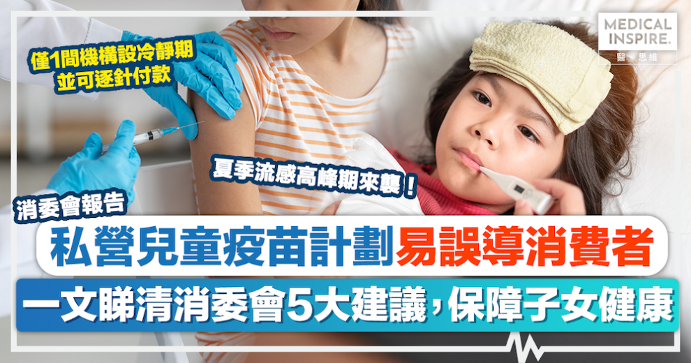 消委會兒童疫苗|本港上周正式進入夏季流感高峰期,免疫系統薄弱的兒童最好需要預先接種流感疫苗。但消委會就發現,市面私營診所的兒童疫苗計劃種類繁多,若市民未有仔細審閱內容細則,不但得不到想要的服務,更可能白白損失金錢!