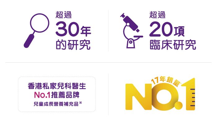 作為連續17年銷量No.1的品牌▲,雅培深受家長喜愛。雅培保兒加營素含有15種營養素^^^、優質蛋白質、益生元及益生菌組合等,其全面的均衡配方比單純的牛奶飲品、鈣片或維他命軟糖更為完整。有別於市面上同類型的兒童成長營養補充品,不但擁有30多年和20多項臨床研究,對2500多名兒童進行了研究,備受兒科醫生信賴,是香港私家兒科醫生No.1推薦品牌兒童成長營養補充品## 。