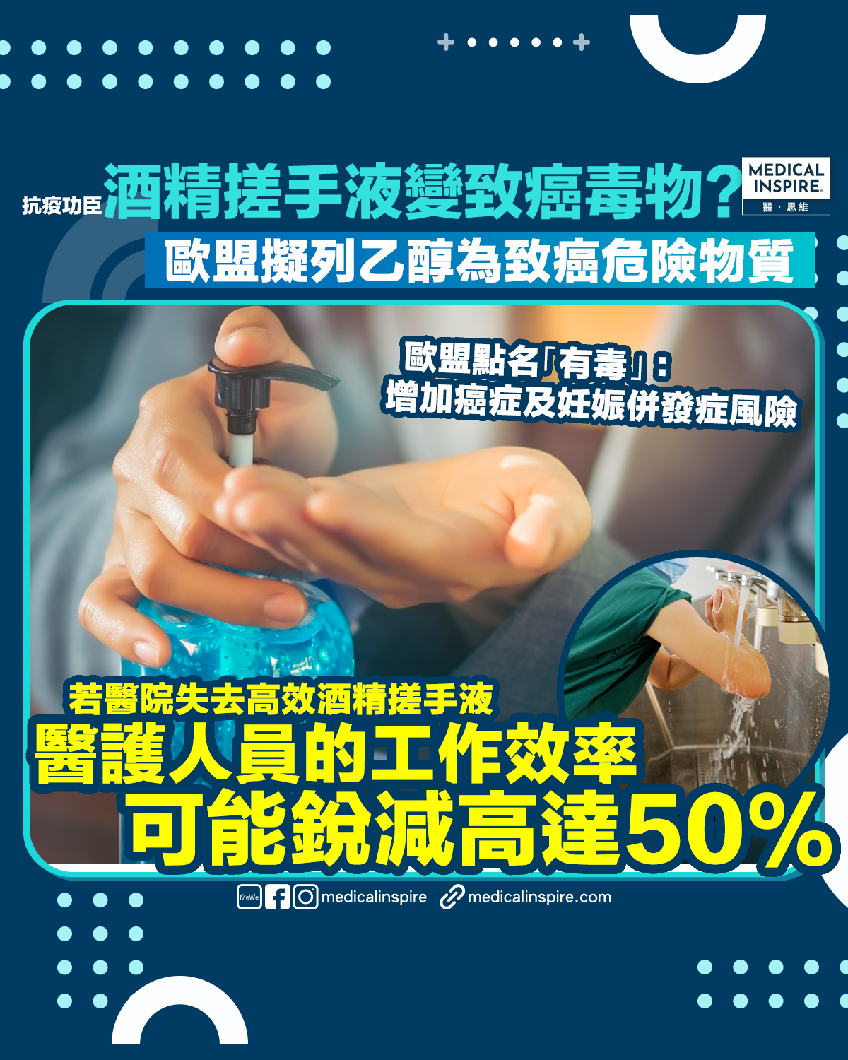 據英國《金融時報》的最新報導,歐盟正考慮將乙醇重新歸類為會增加致癌風險的危險物質。此舉一旦落實,將導致醫院和公共衞生體系中普遍使用的乾洗手液與清潔劑被迫下架。