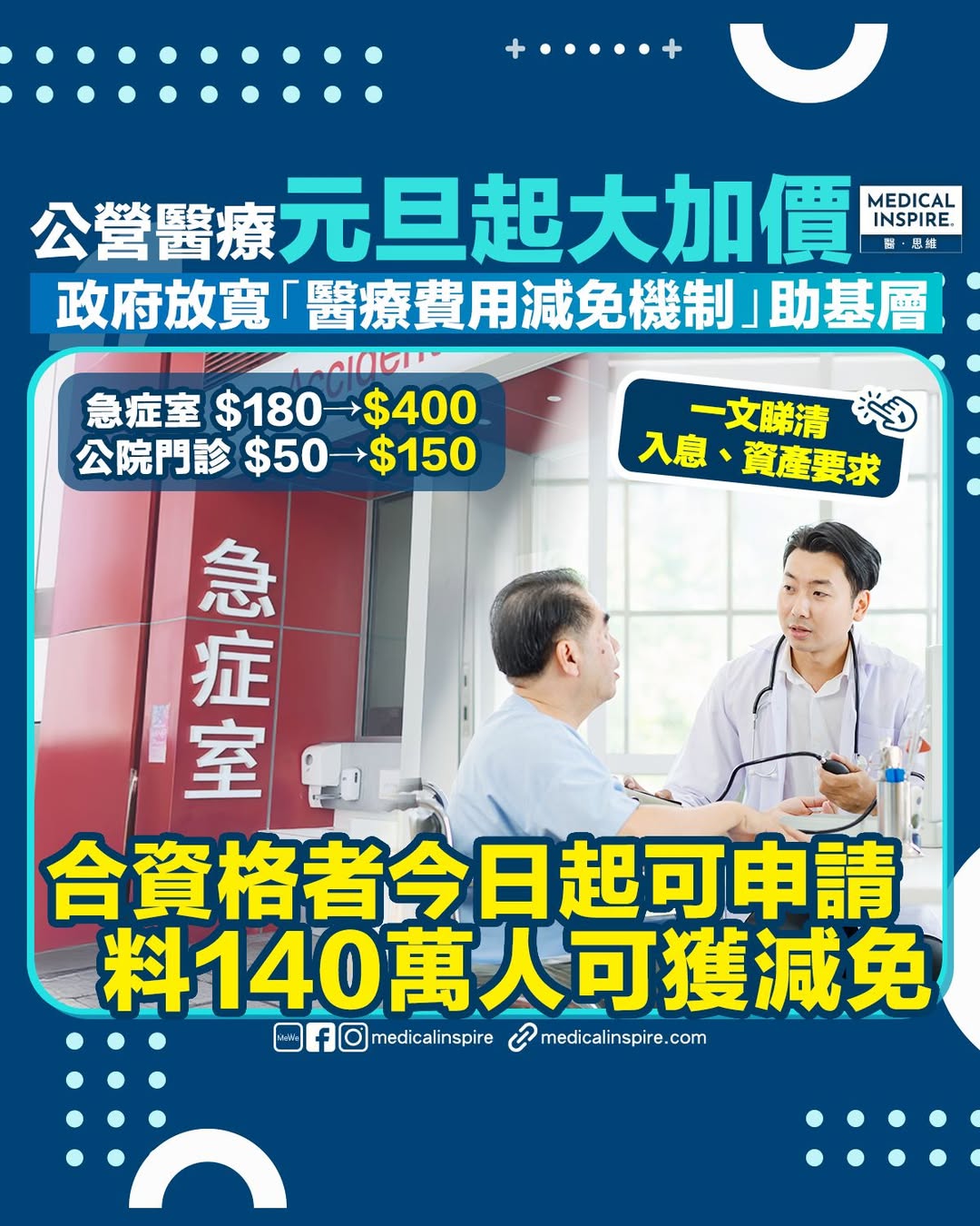 大眾醫療|香港公營醫療系統收費制度即將迎來重大變革。政府早前公布全新收費方案,多項醫療服務的收費會在明年元旦起正式加價。不過,政府也同時放寬「醫療費用減免機制」的申請門檻,合資格市民現已可申請,有望幫助減輕經濟負擔!