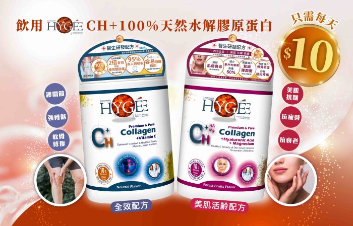 營養師及治療師一致推薦HYGEE CH+法國100%天然水解膠原蛋白,每日飲用修復受損關節!了解更多: