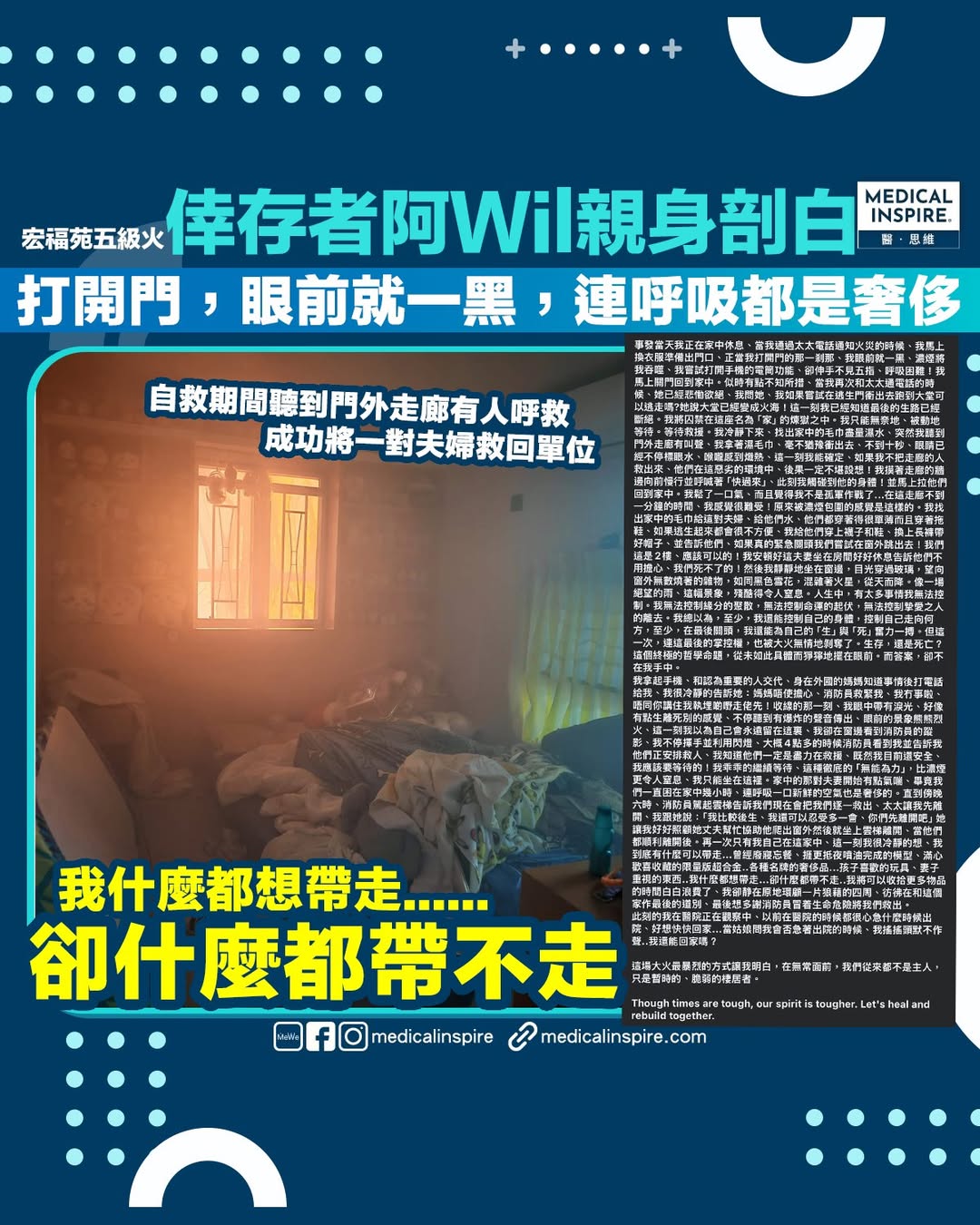 大埔宏福苑五級火|倖存者阿Wil:打開門,眼前就一黑,連呼吸都是奢侈