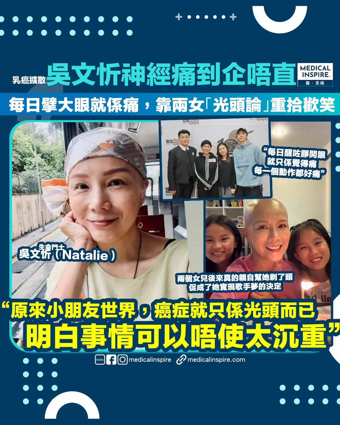 生命鬥士|吳文忻第四期乳癌擴散劇痛!靠兩女「光頭論」重拾歡笑:小朋友世界,癌症就只係光頭而已。
