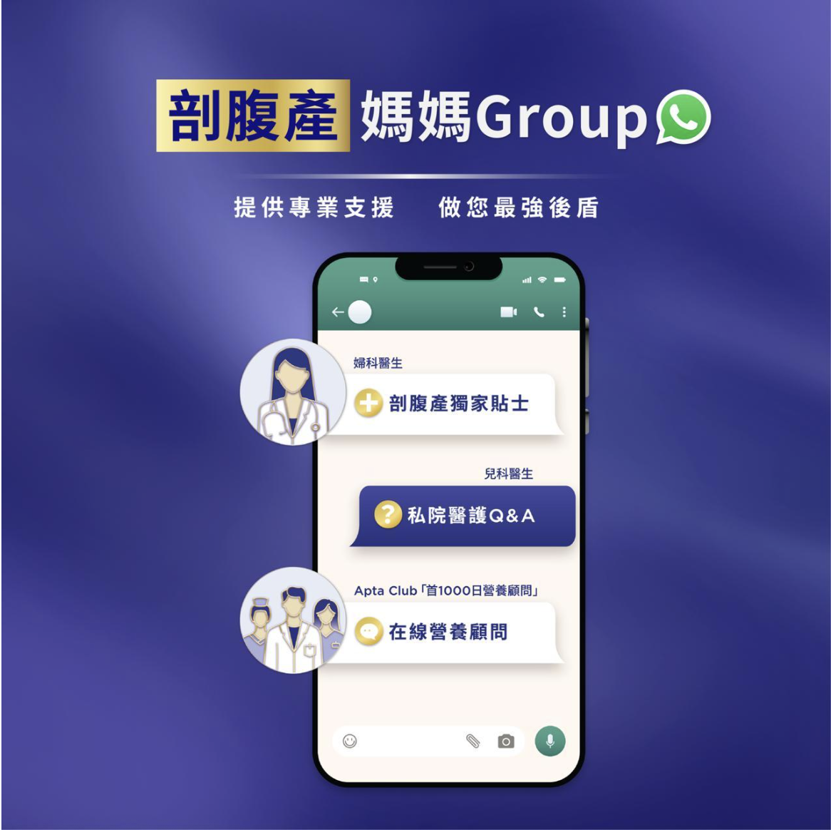 - 媽媽可以加入不同醫院專屬的剖腹產媽媽Group,與同院媽媽分享經驗