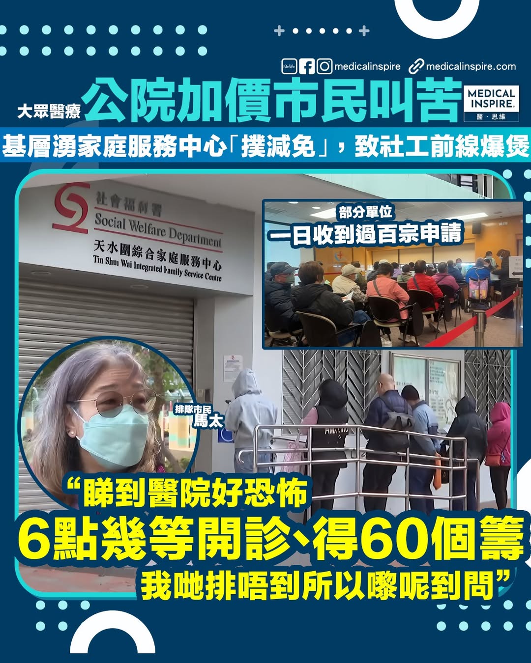 清晨六時排隊攞籌,醫院、社署兩頭走。基層老友記:加價加到心慌慌