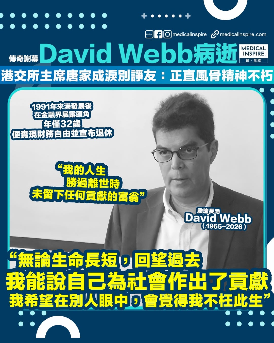 David Webb 的家人在社交媒體表示,他在香港安詳辭世,並呼籲大眾在艱難時刻給予私人空間。雖然這位「股壇長毛」已告別舞台,但他推動市場透明度的風骨,將與他留下的財經遺產一樣,長存於香港人的心中。