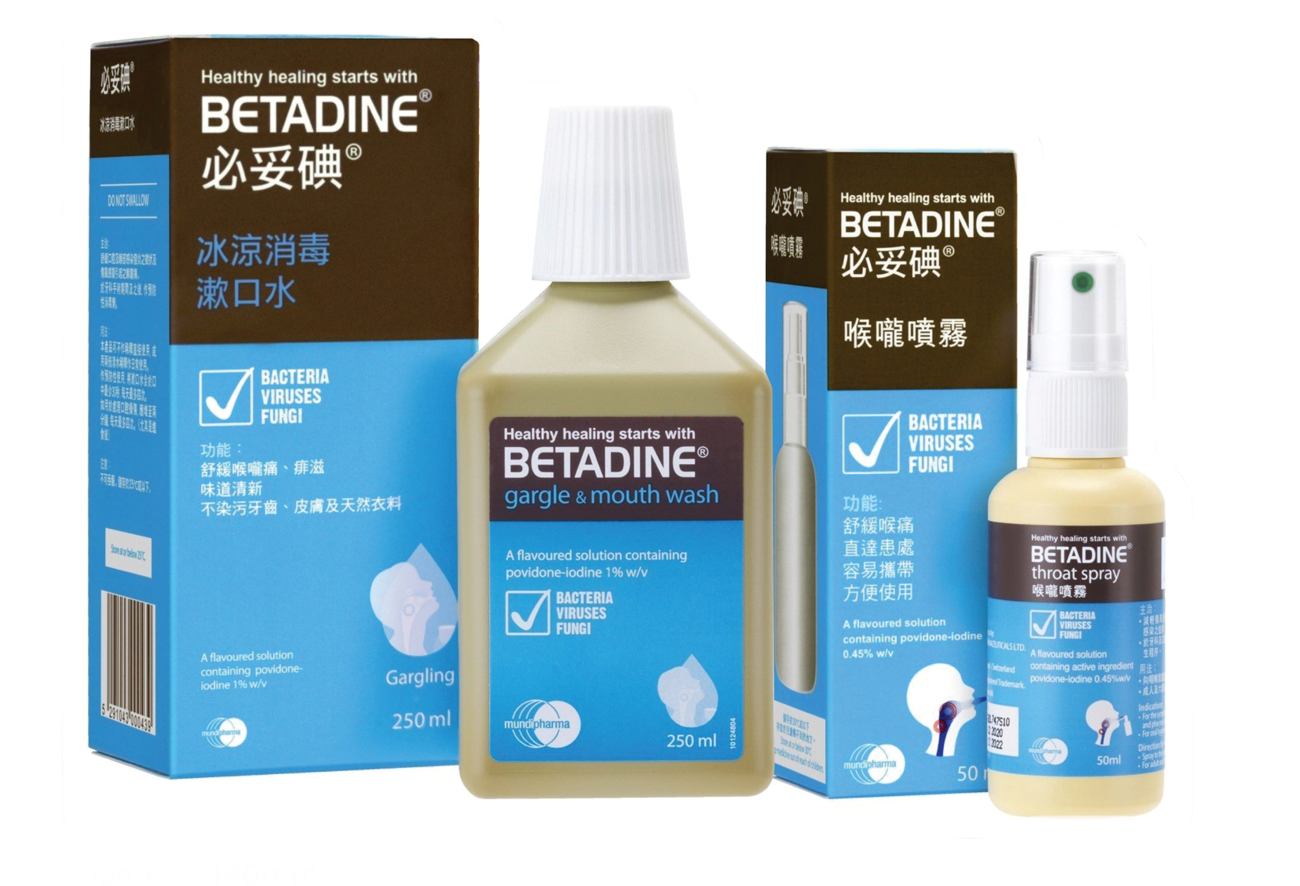 BETADINE® 必妥碘® 喉嚨噴霧 BETADINE® 必妥碘® 冰涼消毒漱口水