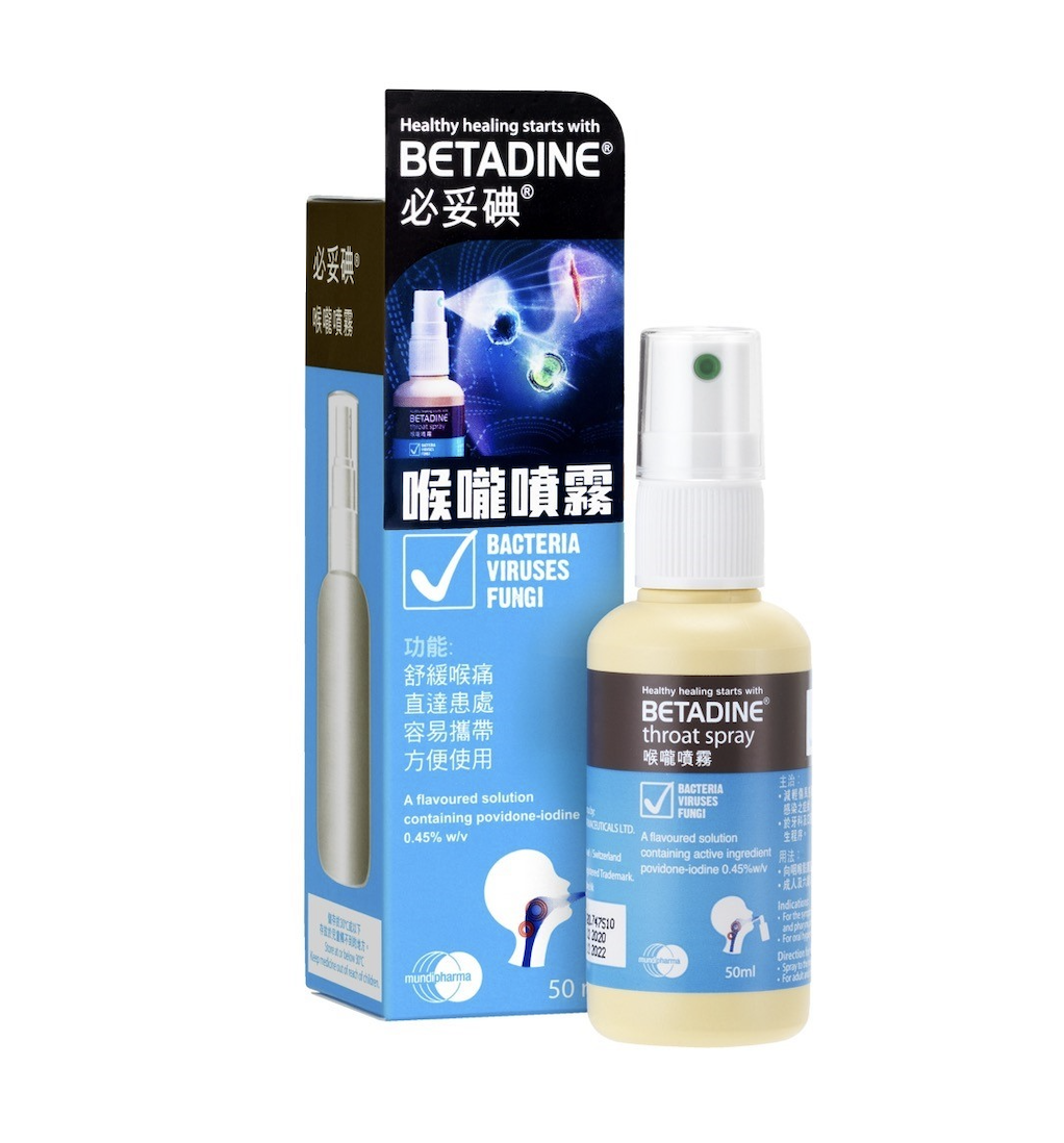 要有效對抗傷風感冒引起的喉嚨痛,很多人都會選購喉嚨噴劑或潤喉糖,藉此舒緩喉嚨痛不適,Brian 提醒選擇産品時可以留意産品的配方成份,應選用含 PVP-I(聚維酮碘)的殺菌產品。