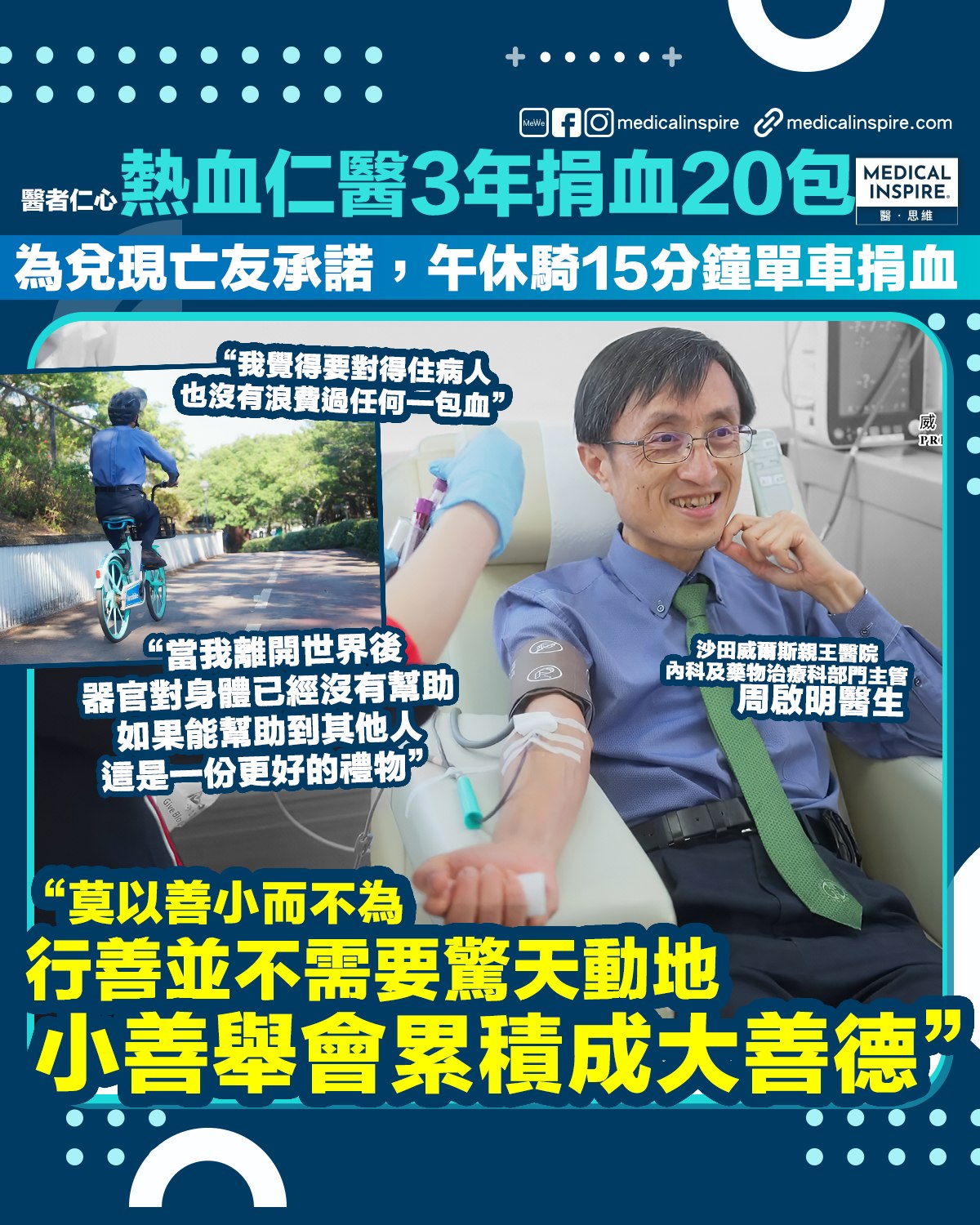 醫者仁心|沙田威院仁醫午休「熱血」單車行:為兌現亡友承諾3年捐血20包!更預約身後捐器官作「最後禮物」