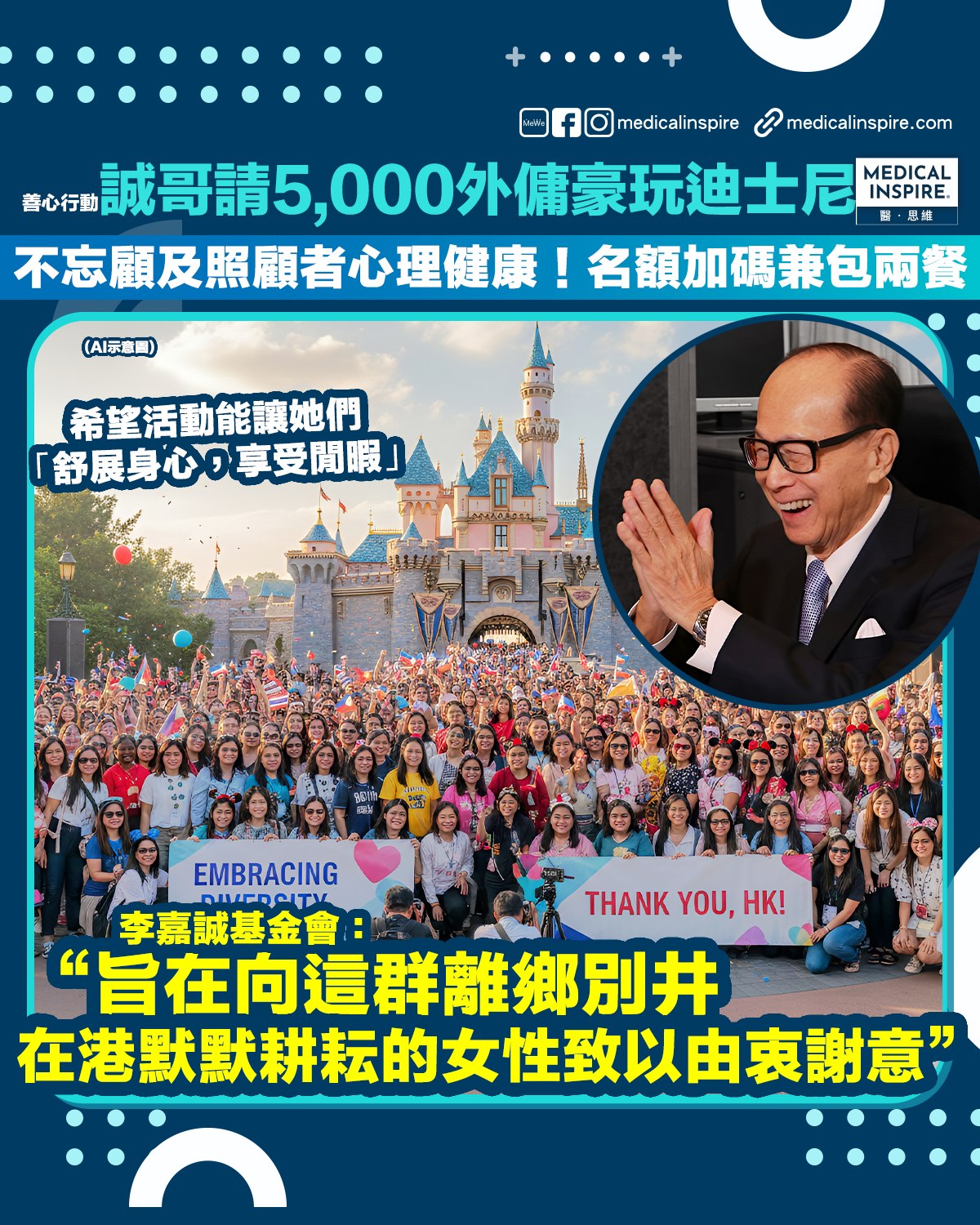 善心行動|香港作為一個生活節奏極快的城市,不少家庭都依賴外籍家庭傭工(姐姐)協助打理家頭細務,甚至是照顧家中老幼。然而,這群默默耕耘的照顧者,其心理健康往往被社會忽視。日前李嘉誠基金會宣佈再次夥拍香港迪士尼樂園,於 2026 年 3 月 29 日及 4 月 12 日,邀請 5,000 名外傭暢遊迪士尼。今次活動不僅名額加碼,更注入了「廣納多元 (Embracing Diversity)」的理念,涵蓋更多不同族裔的社群。