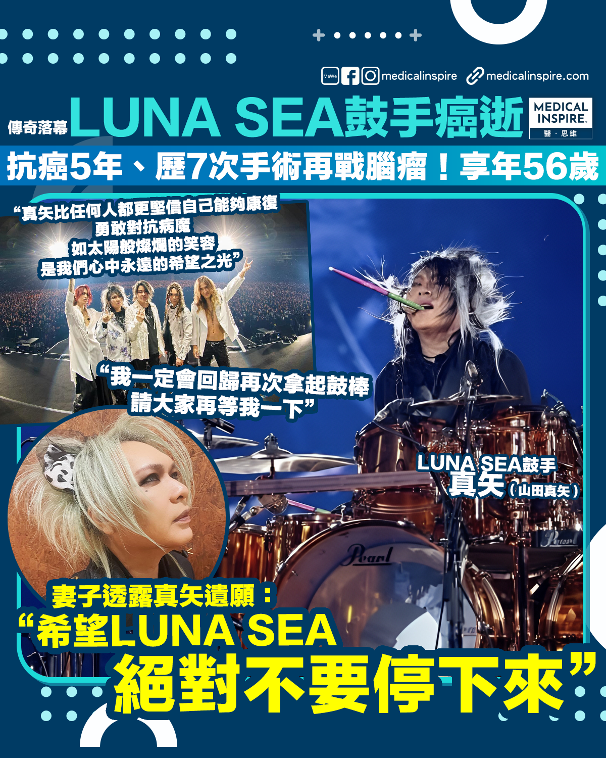 傳奇落幕|LUNA SEA鼓手真矢抗癌5年病逝、享年56歲!歷7次手術再戰腦瘤,臨終遺願惹淚崩:一定要5個人再上舞台
