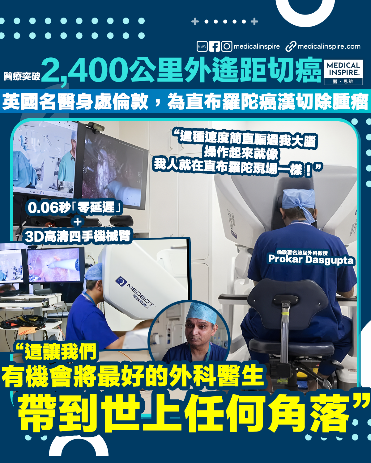 這場「醫療革命」正受到全球關注,在 3 月 14 日 Dasgupta 教授將會再次進行遙距手術,屆時將會向全球 20,000 名泌尿外科專家進行現場直播。