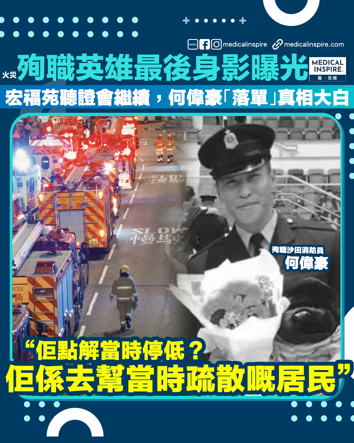 宏福苑聽證會|殉職英雄最後身影曝光!何偉豪「落單」真相大白:為護送居民撤離與同袍失散,吸入過量CO不幸墮樓。