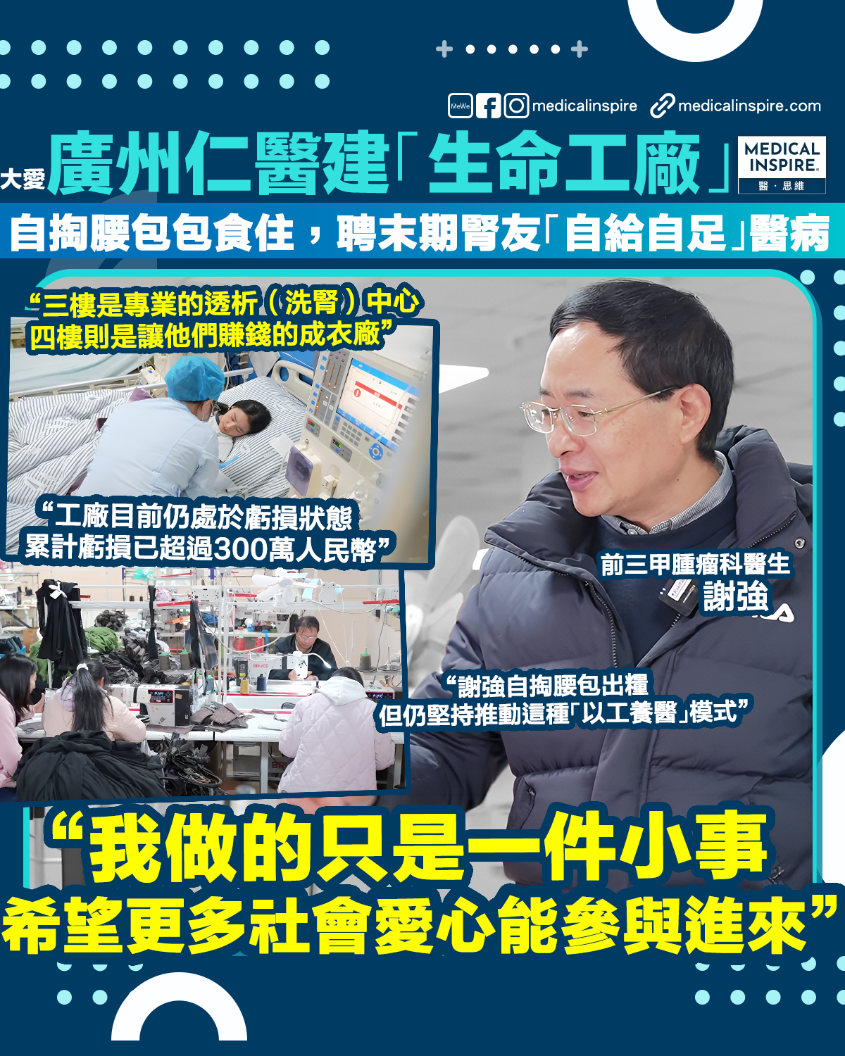 醫者仁心|廣州仁醫建「生命工廠」!前三甲醫生自掏腰包補貼,撐起末期腎友尊嚴:樓下洗腎、樓上車衫,「以工養醫」縫補碎裂人生