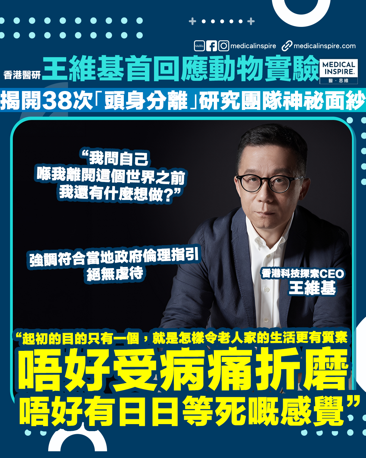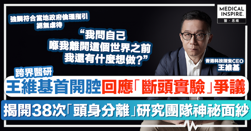 跨界醫研|王維基首開腔回應「斷頭實驗」爭議!親揭4年海外神秘團隊研發初衷:盼長者晚年不再「日日等死」