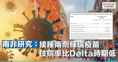 【Omicron】南非研究發現接種兩劑輝瑞疫苗 住院率比Delta時期較低