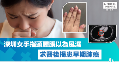 【肺癌徵狀】深圳女手指頭腫脹以為風濕 求醫後揭患早期肺癌