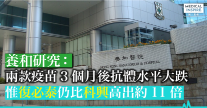 【新冠疫苗】養和研究:科興及復必泰疫苗3個月後抗體水平大跌 惟復必泰仍較高