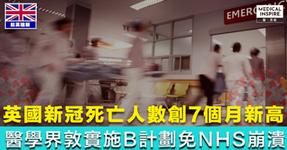 【再響警號】英國錄7個月以來最高新冠死亡個案 醫學界敦盡快實施B計劃免NHS崩潰