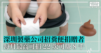 【放金得金】深圳製藥公司招糞便捐贈者 每月最高可捐22次可賺8千