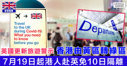 【入境免隔離】英國更新疫情旅遊警示 香港由黃區轉綠區 19日起赴英免10日隔離