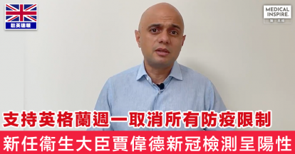 【大臣確診】支持英格蘭週一取消所有防疫措施 英國新任衞生大臣賈偉德新冠檢測呈陽性