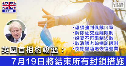 【解封在望】英國首相約翰遜稱7月19日將結束全國所有封鎖措施,預計7月12日作最終決定。