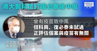 港大醫科生打針後中風 專家委員會成員:未曾出現科興、復必泰致中風
