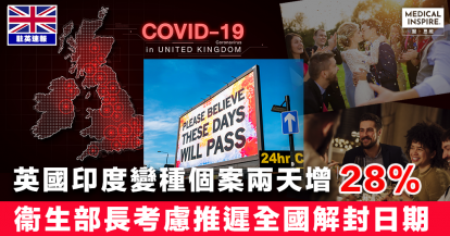 【印度變種危機】英國印度變種確診個案兩天增28%至2,967宗 衞生部長考慮推遲全國解封決定