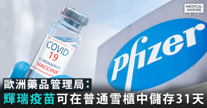 【輝瑞疫苗】歐洲藥品管理局:輝瑞疫苗可在普通雪櫃溫度下儲存31天