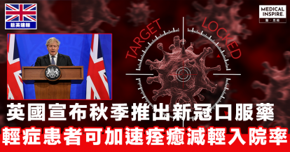 【三管齊下】英國宣布秋季將推出針對治療新冠藥物 輕症患者可於家中口服藥物加速康復時間