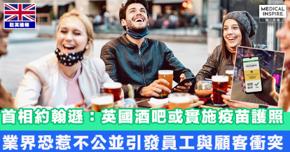 【疫苗護照】英國首相:酒吧或實施疫苗護照 業界恐惹不公並引發員工與顧客衝突