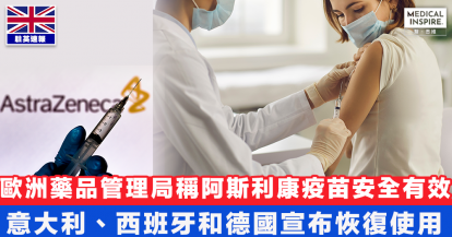 【重拾信心】歐洲藥品管理局:阿斯利康疫苗安全有效 意大利、西班牙和德國宣布恢復使用