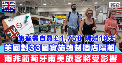 【強制隔離】英國對33國實施強制酒店隔離,南非葡萄牙南美旅客將受影響。(附33個國家名單)