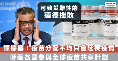 【疫苗速遞】譚德塞警告新冠疫苗分配不均可致「災難性的道德挫敗」