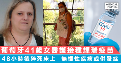 【新冠疫苗】葡萄牙41歲女醫護接種輝瑞疫苗,48小時後猝死床上,父指「女兒無慢性疾病或併發症。」