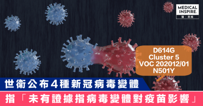 【新冠疫情】世衛公布4種新冠病毒變體,指「未有證據指病毒變體對疫苗影響」。