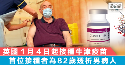 【疫苗消息】英國1月4日起接種牛津疫苗,首位接種者為82歲透析男病人。