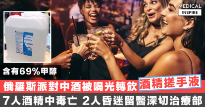 【樂極生悲】俄羅斯派對中因酒被喝光轉飲酒精搓手液,7人中毒死亡,2人昏迷留醫。