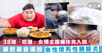 【過度飲食】38歲「吃播」女博主暴飲暴食,致腹部劇痛送院,患上「急性壞死性胰腺炎」。