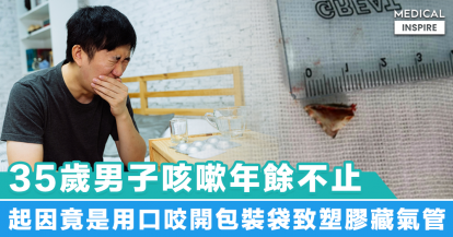 【奇難雜症】35歲男子咳嗽年餘不止,起因竟是用口咬開包裝袋致塑膠藏氣管。