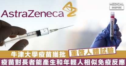 【新冠疫苗】牛津大學新冠疫苗獲批重啓第三階段人體試驗,藥廠指疫苗對長者能產生和年輕人相似免疫反應。