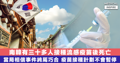 【流感疫苗】南韓有三十多人接種流感疫苗後死亡,當局相信事件純屬巧合,疫苗接種計劃不會暫停。