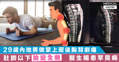 【健身陷阱】29歲內地男做掌上壓後胸背劇痛,肚臍以下險變「全癱」,醫生揭患百萬分之一罕病。