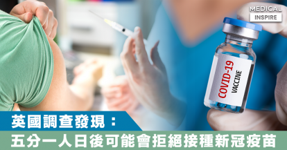 【新冠肺炎】英國調查發現有五分一人日後可能會拒絕接種新冠肺炎疫苗。